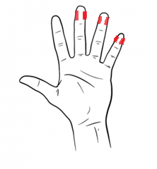 Daumen und Zeigefinger sind im täglichen Gebrauch stark belastet und eignen sich deshalb weniger für die Blutzuckerkontrolle.
