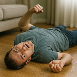 • Plötzliches, unkontrolliertes Zucken der Extremitäten oder starke Anspannung dieser